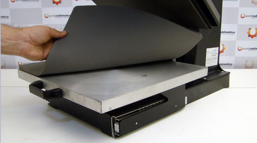 A chapa teflonada facilita muito a limpeza e a base em silicone e não feltro possui não apenas maior durabilidade mas também colabora com a estabilidade das prensagens, portanto na qualidade do processo. A capa preta que proteje a base de silicone acompanha o equipamento.
